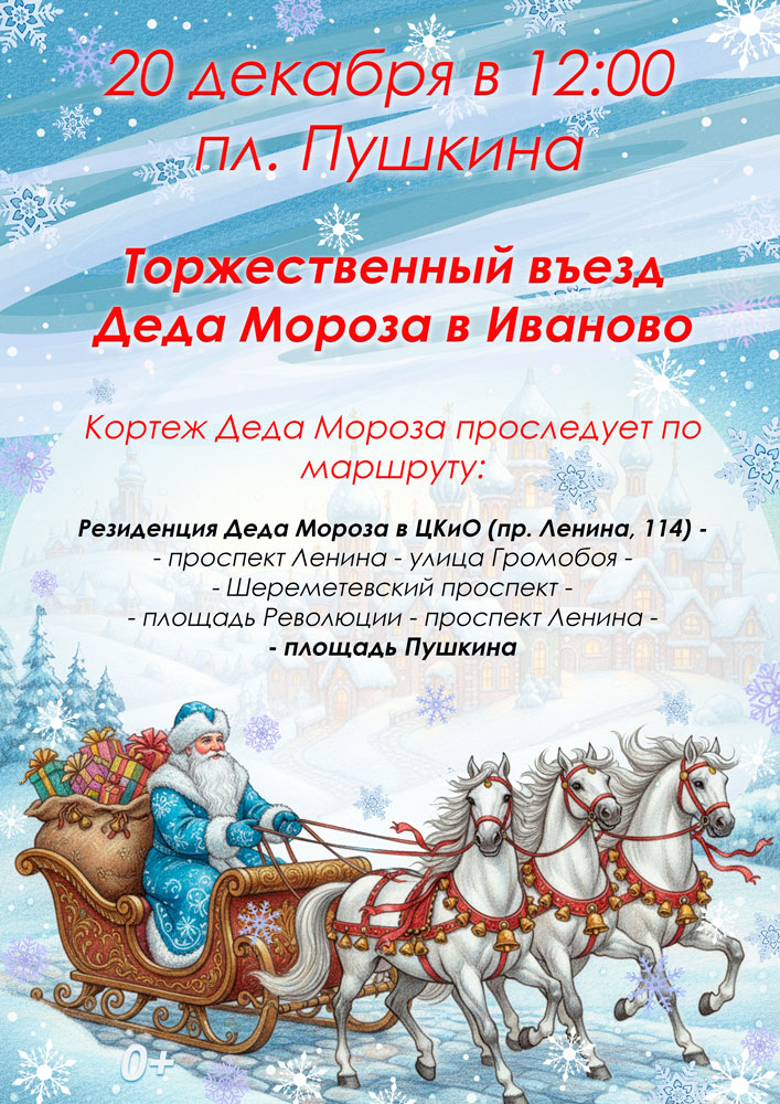 Подробнее20 декабря главный зимний волшебник страны, Дед Мороз, вместе со своей любимой внучкой Снегурочкой прибудут в Иваново!